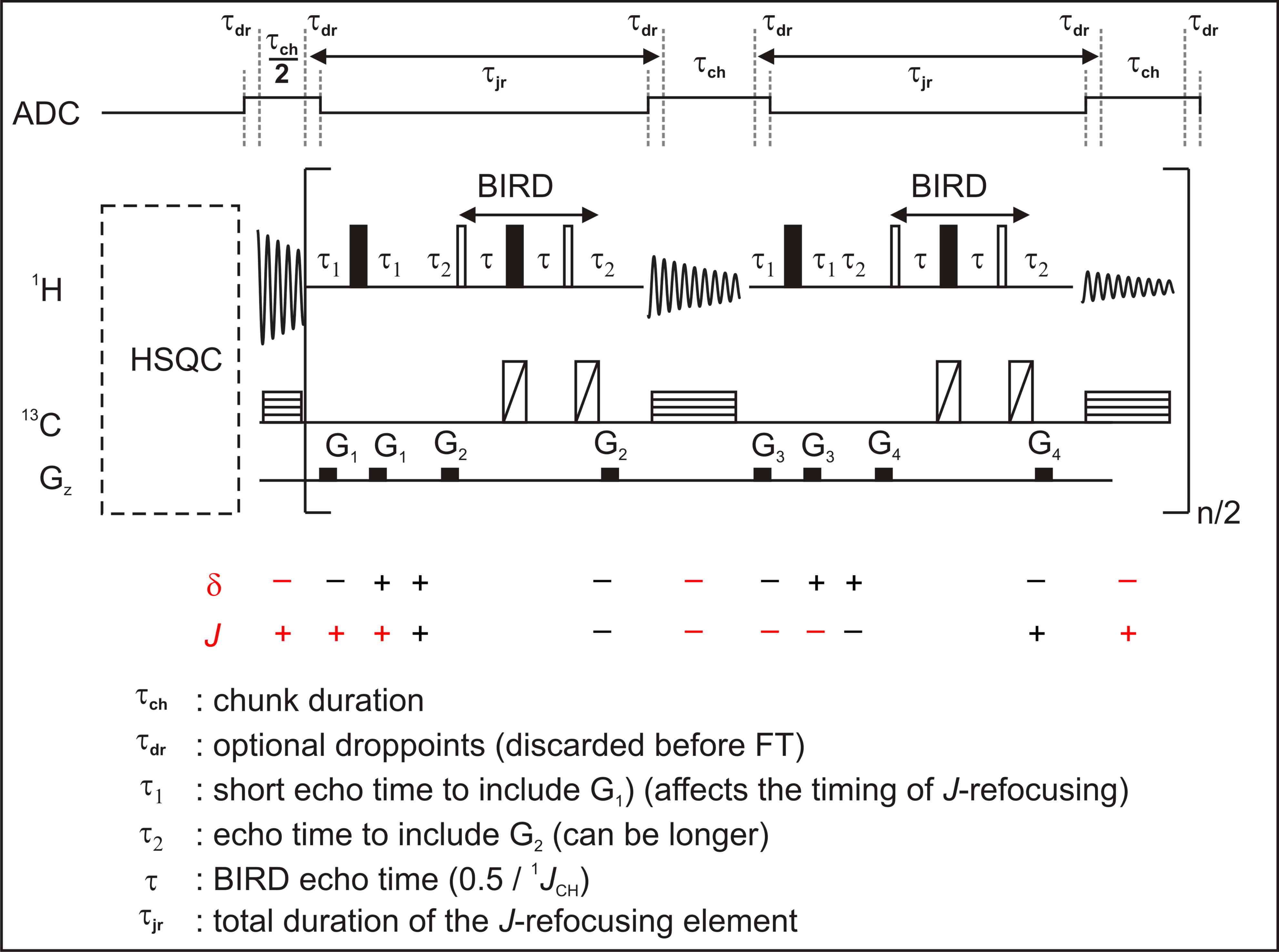 Pure Shift NMR Spectroscopy suppresses the effects of homonuclear coupling, allowing HSQC spectra to be produced that contain chemical shift only in both dimensions. Real-time pure shift acquisition provides a major improvement in resolution, and a modest sensitivity enhancement, compared to the conventional gHSQC experiment. The applicability of the method has been demonstrated for both small molecules1 and proteins2. The current version3,4 of the pulse sequence provides clean results by using extended phase cycling, chunk-to-chunk gradient pulse and phase variation, and correction for the minor data corruptions caused by digital signal processing and finite receiver bandwidth.